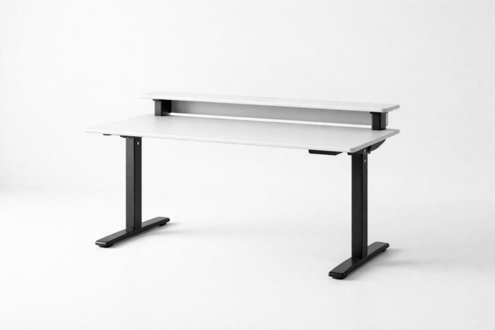 Adjustable Height Desk with Shelf White MDF and Steel 120cm