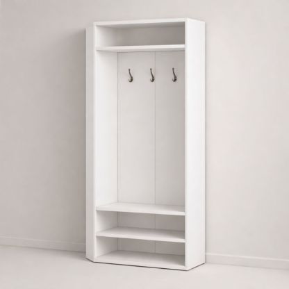 White Corner Hall Tree with Hooks and Shelves MDF 180cm Height