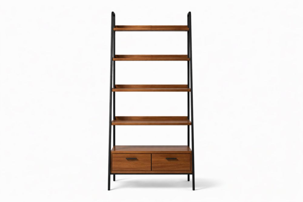Wood Metal Leaning Bookshelf with Storage Drawers 180cm x 60cm x 40cm